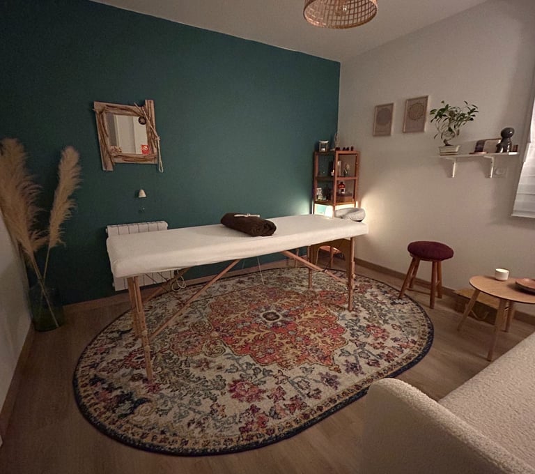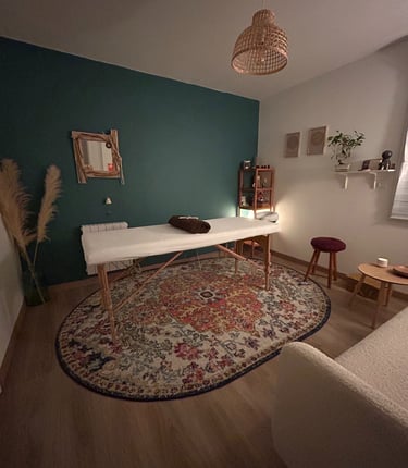 Depuis un espace d’écoute et de douceur, je vous invite à la détente et au bien-être, et c'est avec joie que je vous accueille au studio dans un cadre serein et chaleureux. Je me déplace également à domicile et interviens en entreprise ou sur des évènements privés.